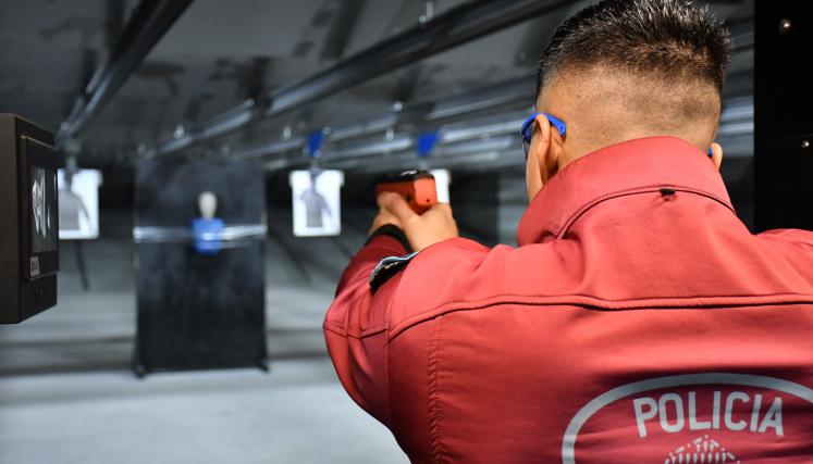 Lee Mas "La Ciudad mostró este viernes cómo se están capacitando los policías con las nuevas armas de letalidad reducida, llamadas BYRNA,…